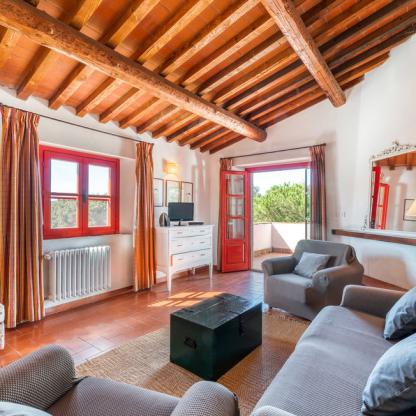 7 double bedrooms, 6 bathrooms, 3 lounges with fireplace, 3 kitchens, balcony, covered porch, furniture for the garden, barbecue.