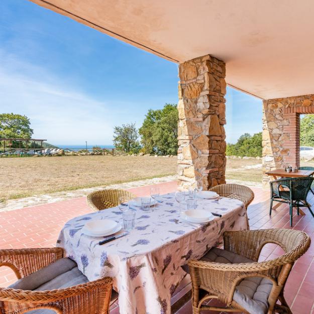 Amazing independent two floor house garden with amazing panoramic views of the sea for 16 people. Absolutely quiet environment. Terrace equipped for outdoor meals and barbecue.