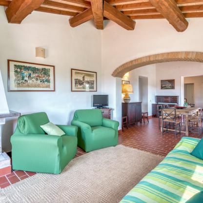 7 double bedrooms, 6 bathrooms, 3 lounges with fireplace, 2 kitchens, balcony, covered porch, furniture for the garden, barbecue.