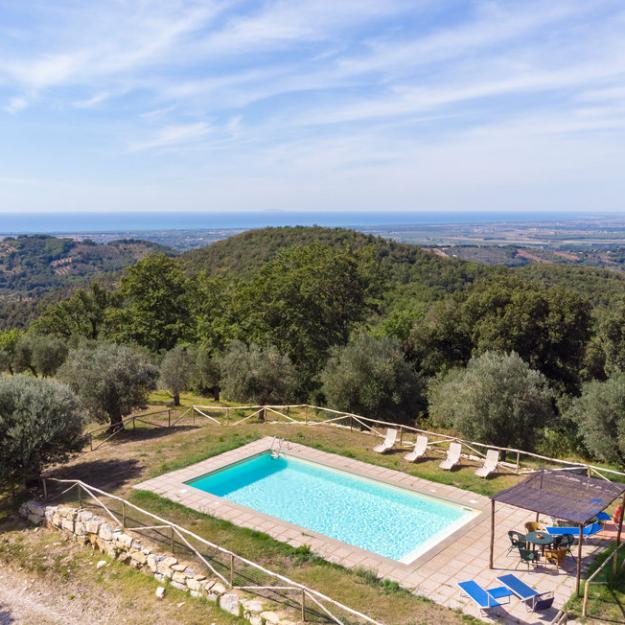 Authentic Tuscan independent two floor farmhouse with private pool and large garden with marvelous views to olive forest for 13 people. Terrace equipped for outdoor meals and barbecue. Immersed in nature !